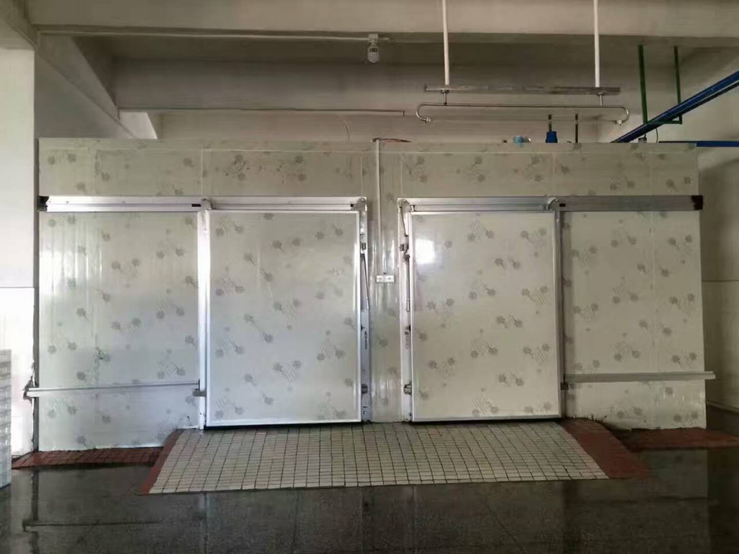 冷庫板采用10cm聚氨酯雙面0.376彩鋼板,機(jī)組采用兩套12匹江蘇雪梅水冷機(jī)組,冷庫