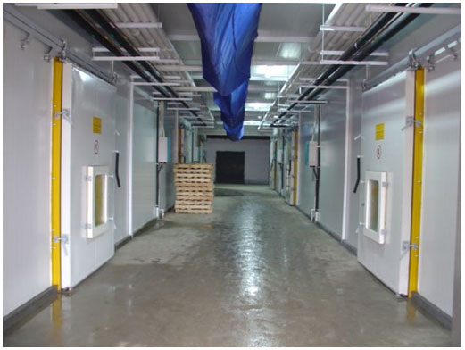 當(dāng)前絕大部分的中小型食品冷庫設(shè)計時采用的一般是100mm聚氨酯庫板,環(huán)境溫度一般取32℃,貯藏比重取5m3/t,進貨量30%。但是在實際的操作中,客戶一般就告知“我要造多大多大的食品冷庫”,“溫度打到多少多少度”,然后我們的工程師到工地上面進行尺寸測量來決定最終的大小。